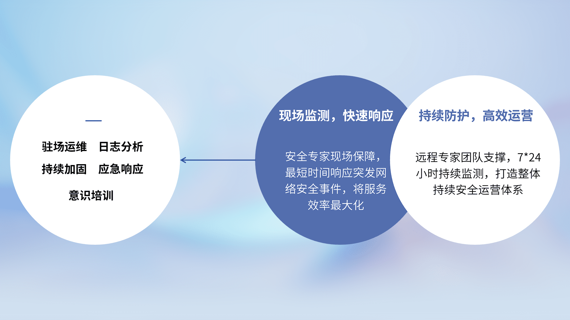 7X24小时持续监测安全事件,保持安全策略有效性,降低资产脆弱性风险,,,精准拦截黑客攻击,,,减少被黑客利用的机会,,第一时间遏制,,,,降低损失。。